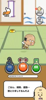 - 運動ボタンを連打すると、おじさんのお腹が早く空きます