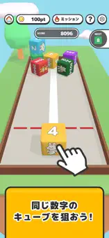 同じ数字の立方体(ボックス)をスワイプしてぶつけるだけ!