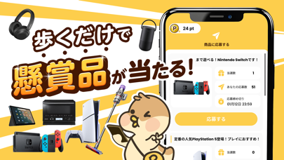 ・懸賞に応募 - ポイントを使ってさまざまな懸賞に応募することができます。歩数を計測するだけで豪華な賞品をゲット!