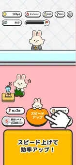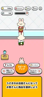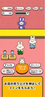 働くうさぎたちをタップして応援し、お店を大きくするだけ!