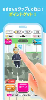 満員電車の中から“おぢさん”を見つけて、タップで救出しよう! スキマ時間にサクッと遊べて、コイン(ポイント)が貯まる 爽快タップ×放置対応ゲームです。救出するほど「感謝」がたまり、電車を強化して効率アップ。 連打が気持ちいい、集めるほどハマる、続けるほどポイントが貯まります。