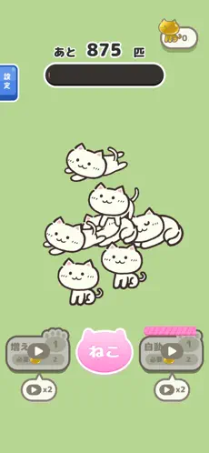 タップするだけの簡単操作で、いろんなポーズのねこがどんどん増え続けます。ステージごとに色んな模様のねこが登場するので、お気に入りのねこを探しましょう