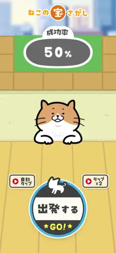 主な機能:宝探しステージの進行、猫キャラクターのコレクション、癒し系BGM、シンプル操作で脳トレ感覚のプレイ