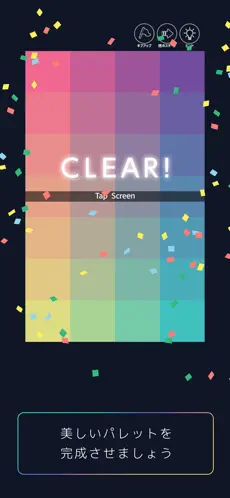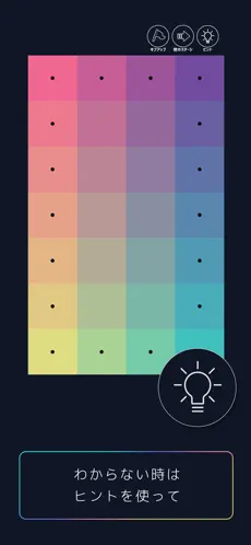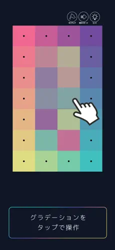 いろとりどりのピースをタップで入れ替えましょう。動かしたいピースをタップし、移動させたい場所をタップすると位置が入れ替わります!どんどん並べ替えてグラデーションを作りましょう!