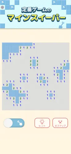 主な機能:マインスイーパーゲーム盤面、ヒント機能、タイム計測、成績記録、複数難易度選択、メモ機能