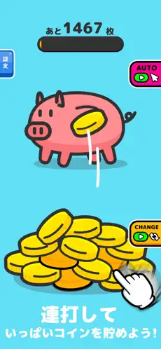 ポイポイ貯金箱は、貯金箱にひたすらコインを投げ込んで貯金箱を破裂させるというクリッカーゲームです!どんどんお金を貯めて、個性豊かな貯金箱をパンパンにしましょう。シンプルだけど気持ちよくてクセになります