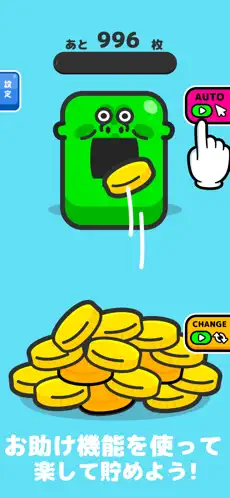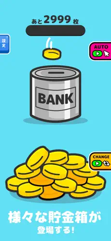 2. 基本操作:画面をタップしてコインを投げ入れ、貯金箱に貯めていきます。落ち方や角度を工夫しながら、できるだけ効率的に集めましょう。