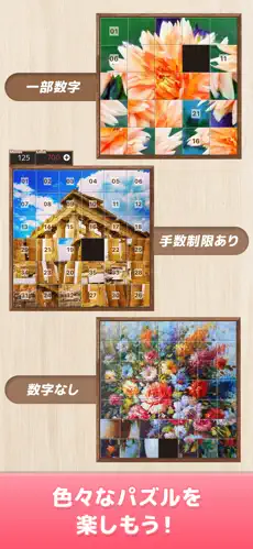 スライドパズルは、バラバラになったピースをスライドさせ、正しい位置に戻して完成させるパズルです。空白のマスを活用して一手ずつ動かし、最短手数を目指す楽しみがあります。