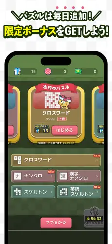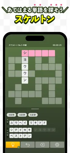 2. 基本操作:出題されるクロスワードを解き、正解するとポイントを獲得。