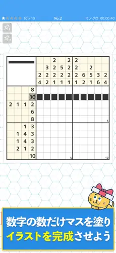 2. 基本操作:縦横の数字を見ながらマスを塗り、隠れたイラストを完成させる