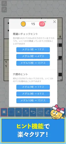 マスが細かくなると誤タップしてしまうこともありますが、紙と鉛筆よりは数倍楽なので気にはなりません。