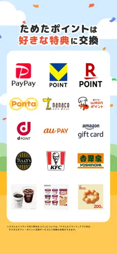 コインと交換:クラシルリワードの特典(例:PayPay、dポイント等)に交換可能。目安として100コイン=1円相当(公式Webの表記に準拠)。