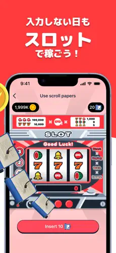 上記のミッションでは巻物が貰え、巻物を10 個貯めるとスロットを回せます。スロットで