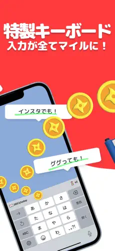主な機能:文字入力でポイント獲得、貯まったポイントをマイルなどに交換、テーマ変更、利用統計の確認など