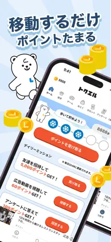 歩くだけでポイントが貯まるお得アプリ。1,000歩ごとにポイントが加算され、広告視聴やタロット占い、デイリーミッションでも追加ポイントをゲット可能。毎日の散歩や通勤がそのままポイ活になります!
