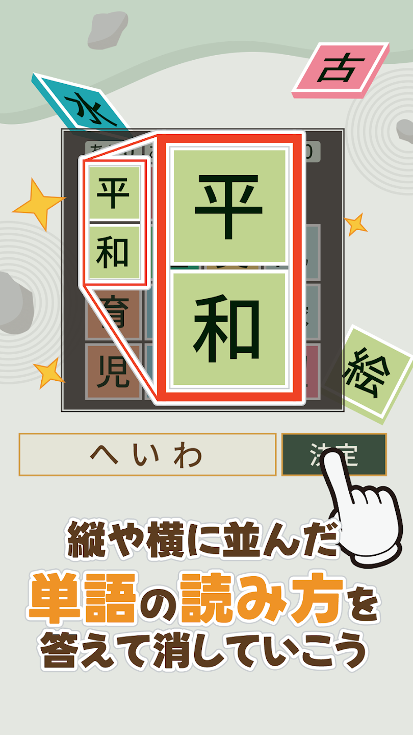 『ポイ活漢字マスター』は子供から大人、シニアまで幅広く楽しめる!縦や横に並んだ単語の読み方を答えて消していく、勉強にもなる漢字パズル&クイズゲームです。