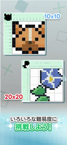 あらゆる世代に人気のロジックパズル!ブラウンやサリーたちとピクセルアートを完成させよう!ゲームのルールはかんたん!縦と横の数字を手がかりに進めるパズルゲームだよ。それぞれの数字が重なる位置に■を塗ってイラストを完成させよう。気軽に遊ぶ?じっくり遊ぶ?いろいろなゲームモードのパズルを解いてコインをゲットしよう!