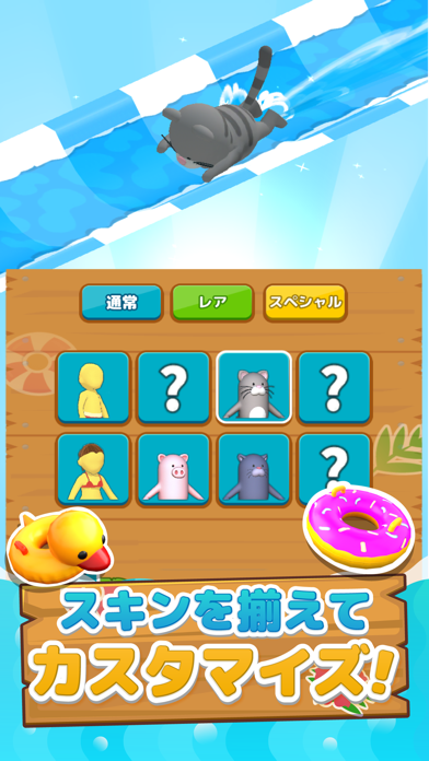 スキンには可愛い動物たちがいっぱい!他にも浮き輪やグライダーのアイテムスキンも解放して可愛くカスタマイズしよう!