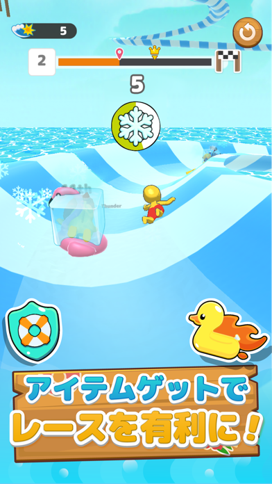 他のレーサーを突き落としたり、アイテムを駆使して1位を目指そう!