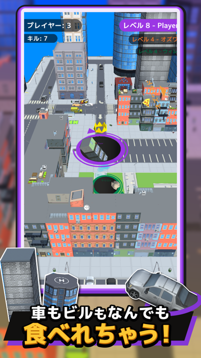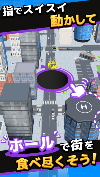 「Hole.io」がパワーアップして登場!何でも食べちゃうブラックホール、その名も"イートホール"。イートホールを操作して、街にあるモノ全てを食べちゃおう!イートホールは、食べれば食べるほどに巨大化していくよ!