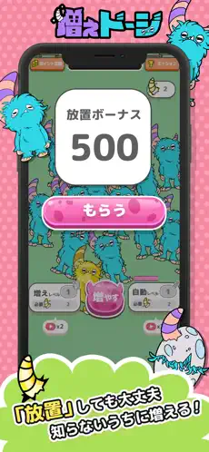 タップするだけの簡単操作で、いろんなドージがどんどん増え続けるよ。ステージごとに色んなドージが登場するので、お気に入りのドージを探してね!
