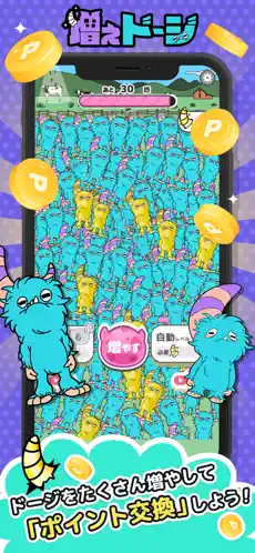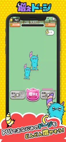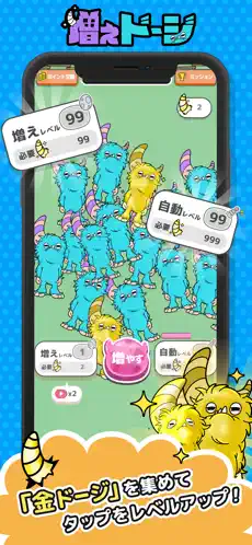 タップするだけの簡単操作で、いろんなドージがどんどん増え続けるよ