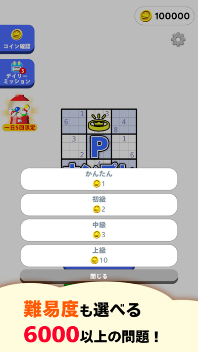 『Pナンプレ』は初心者から上級者まで幅広く楽しめる!9×9のマスに1から9までの数字を並べてマスを全て埋めていくロジックパズル。