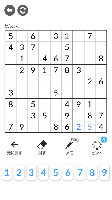 無限にあるナンプレの問題を無制限にプレイできるよ!クリアしてポイントを貯めよう!難易度の選択や、追加のヘルプ機能が利用可能!脳トレしながら空いた時間を楽しく過ごそう!