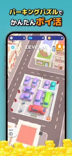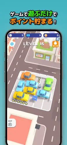 スキマ時間の暇つぶし(ひまつぶし)でポイントが貯まる無料ゲームです。初心者から上級者まで楽しめる脳トレにもなるゲームで、あたまを使うパズルゲームとしても人気です。3Dの自動車をスワイプして駐車場から上手に出庫させるパズルゲーム。
