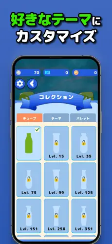 グラス(試験管)をタップして色水を注ぎ、同じ色の水を一つのボトルに並べ替える中毒性のあるパズルゲーム。