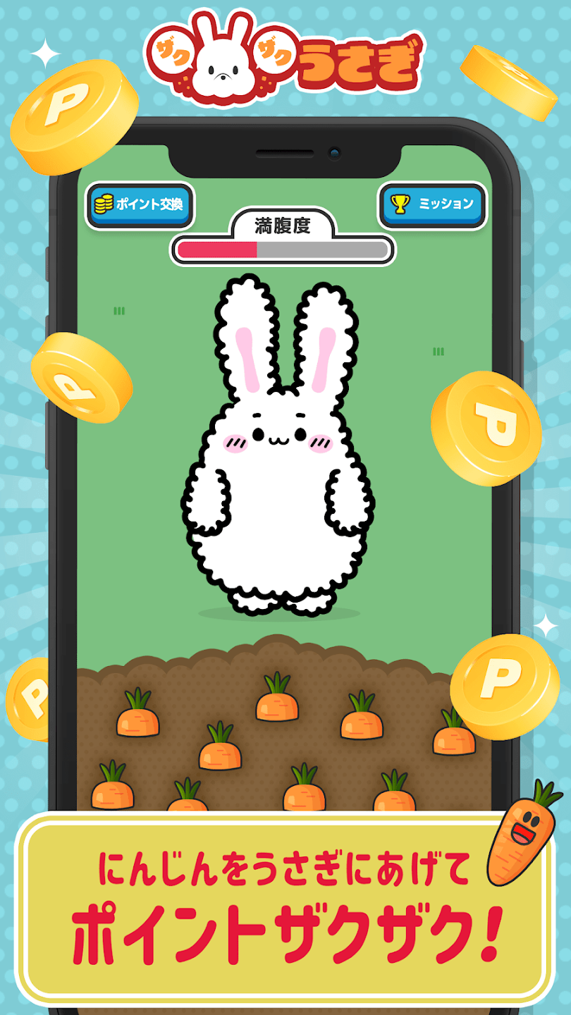③うさぎが満腹になるとクリア!ポイントゲットです!
