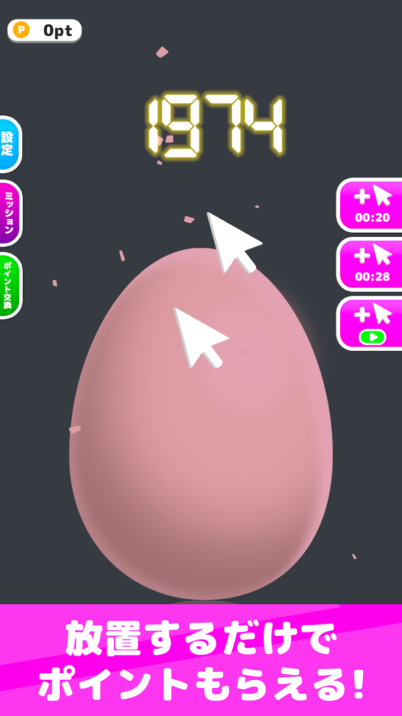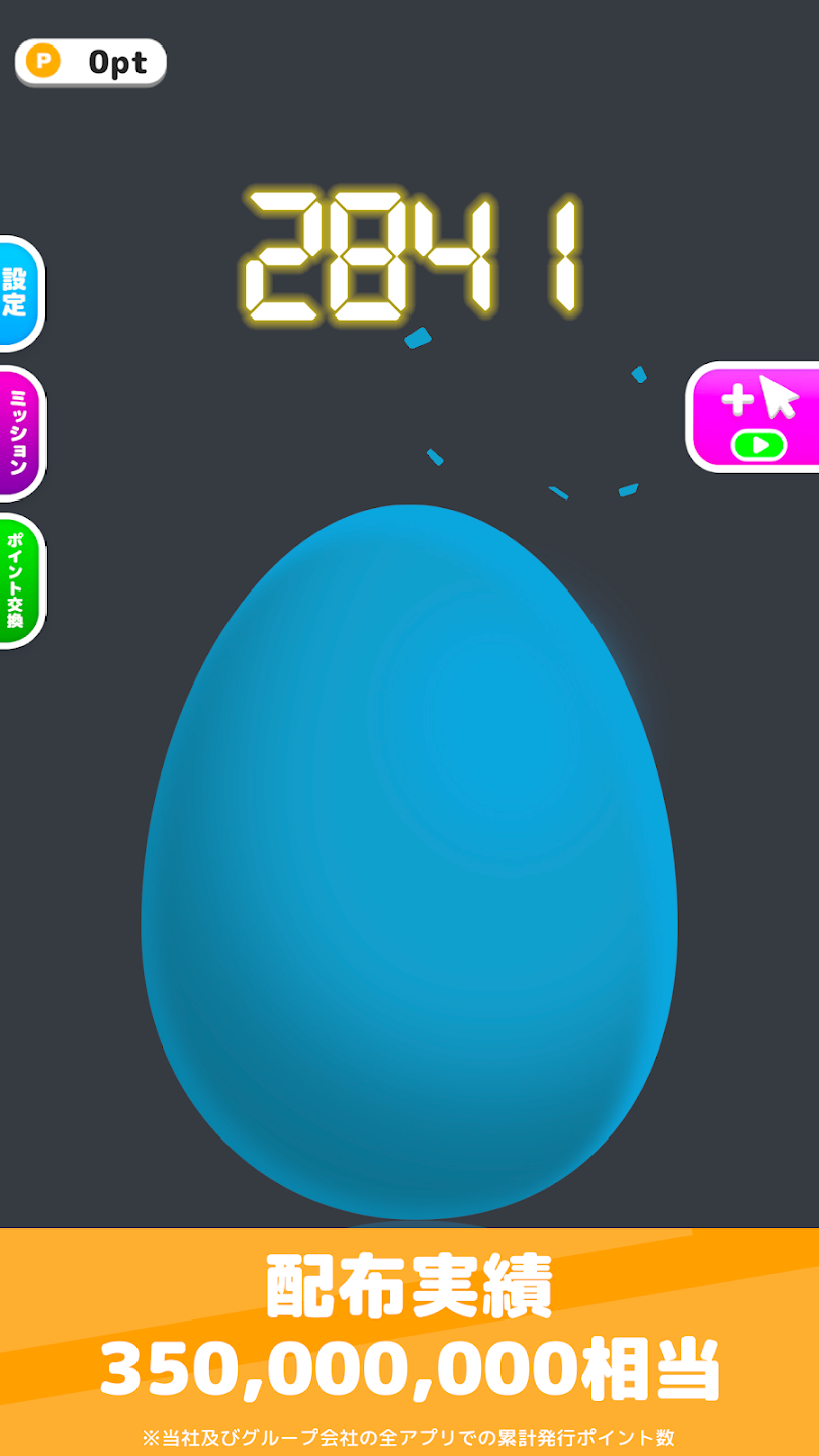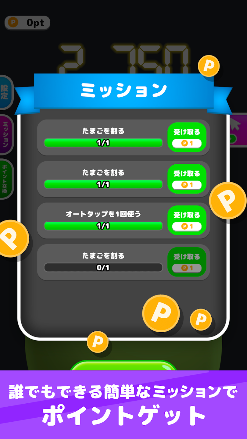 タマゴをタップして指定回数を達成すればポイントが貯まります!
