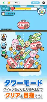 mininiスイーツをバランスよく積み上げてケーキタワーを作るパズルゲームだよ。