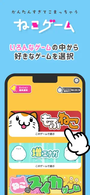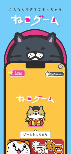 ねこゲームは、複数のミニゲームが一つに詰まった、手軽に遊べる総合ゲームアプリです。