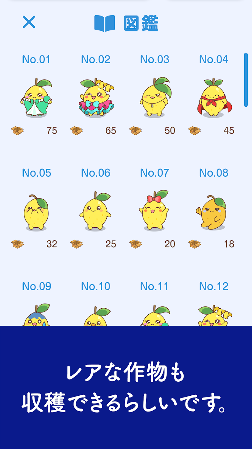 可愛いトマトやお疲れのレモン…?個性豊かなキャラクターを図鑑に登録できる
