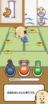 - 運動ボタンを連打すると、おじさんのお腹が早く空きます