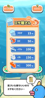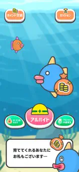 マンボウを成長させていくと、彼らから"お礼"としてポイントがもらえます。