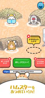 『ハムあつめ』は、かわいい小さなハムスターたちを放置で集める癒し系放置ゲームです。 アイテムを設置して放置するだけ。気づいたときにはハムたちがたくさん集まっています。