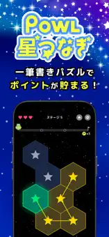 ポイ活アプリ「Powl」を利用している方/ポイントをもっと効率よく貯めたい方/一筆書き・パズル・ロジックパズル・脳トレが好きな方/星や星座が好きな方/癒し系ゲームを探している方/ゲームを楽しみながらお小遣いを稼ぎたい方/スキマ時間に手軽に遊べるゲームを探している方/無料で遊べるパズルゲームを探している方/かわいいキャラクターが好きな方/子供から大人まで家族で楽しめるゲームを探している方